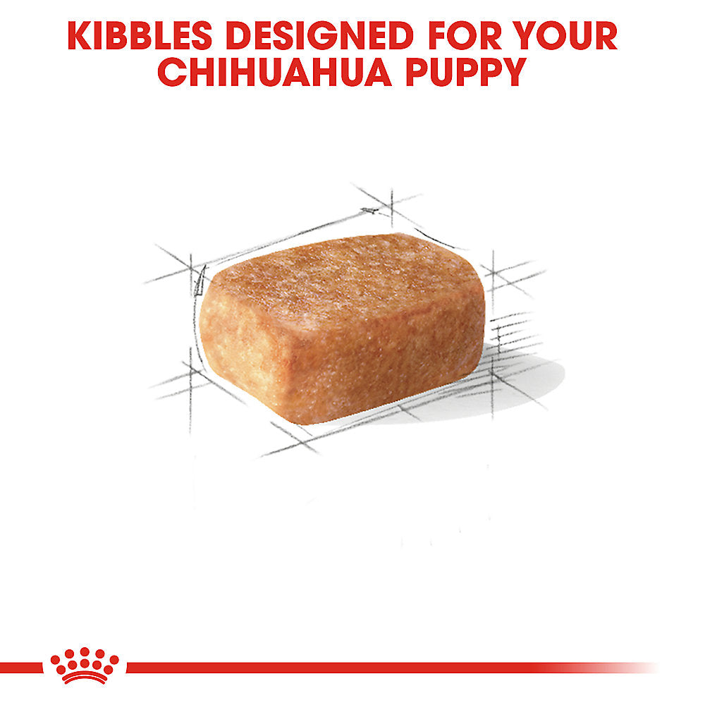 Esta exclusiva croqueta de tamaño pequeño ha sido desarrollada para adaptarse a la mandíbula miniatura del cachorro Chihuahua.