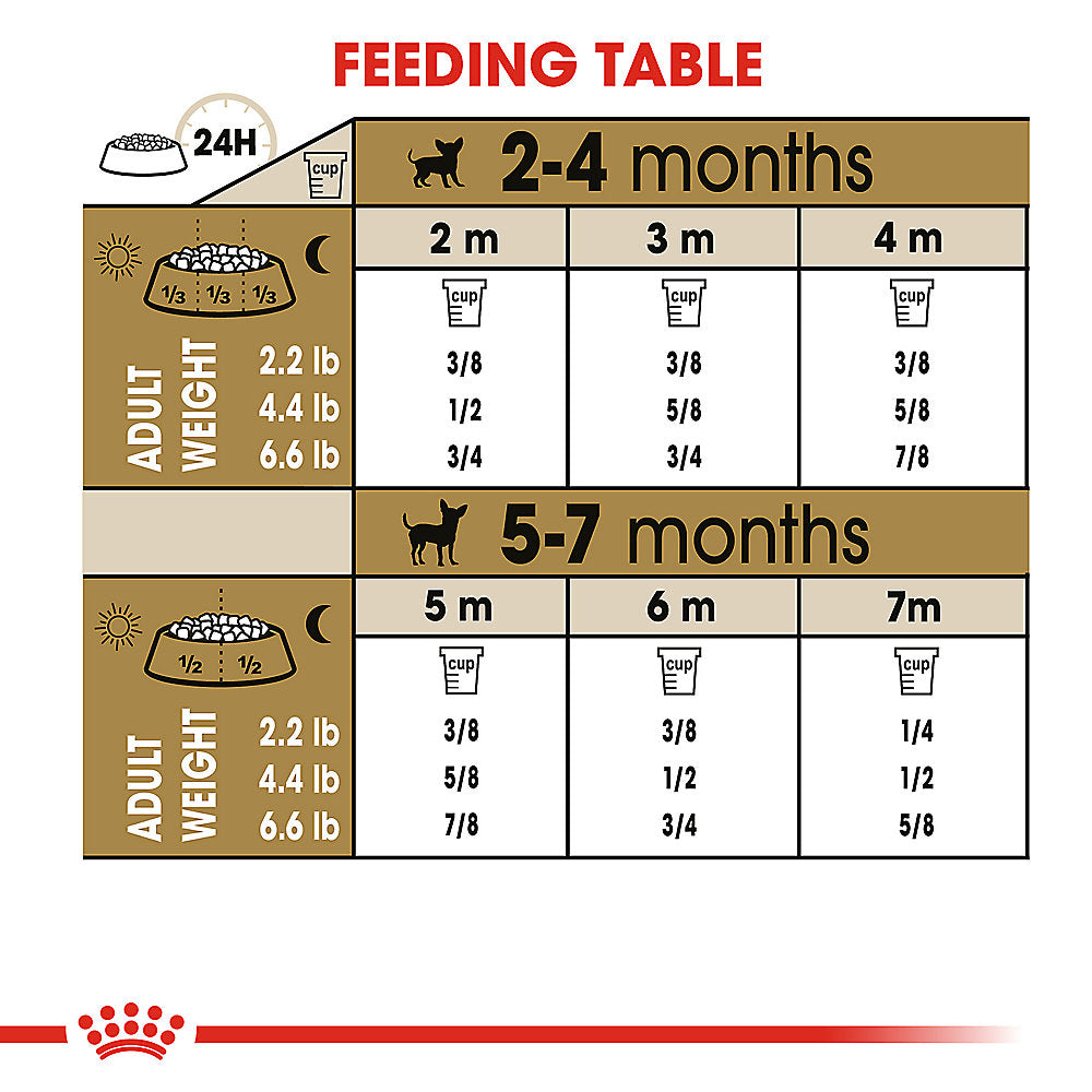 El Chihuahua suele tener un apetito caprichoso. Por ello se recomienda una alimentación de gran palatabilidad. Chihuahua Cachorro satisface el apetito delicado del cachorro Chihuahua gracias a una combinación de tres factores: una selección cuidadosa de sabores y aromas excepcionales y una croqueta con forma y tamaño personalizados.